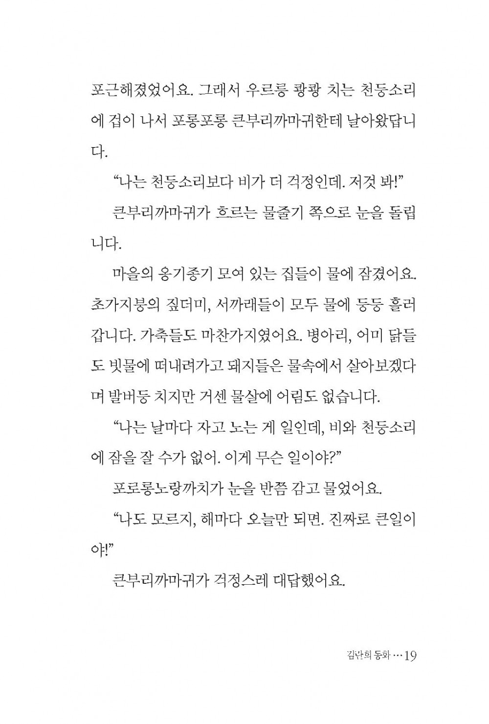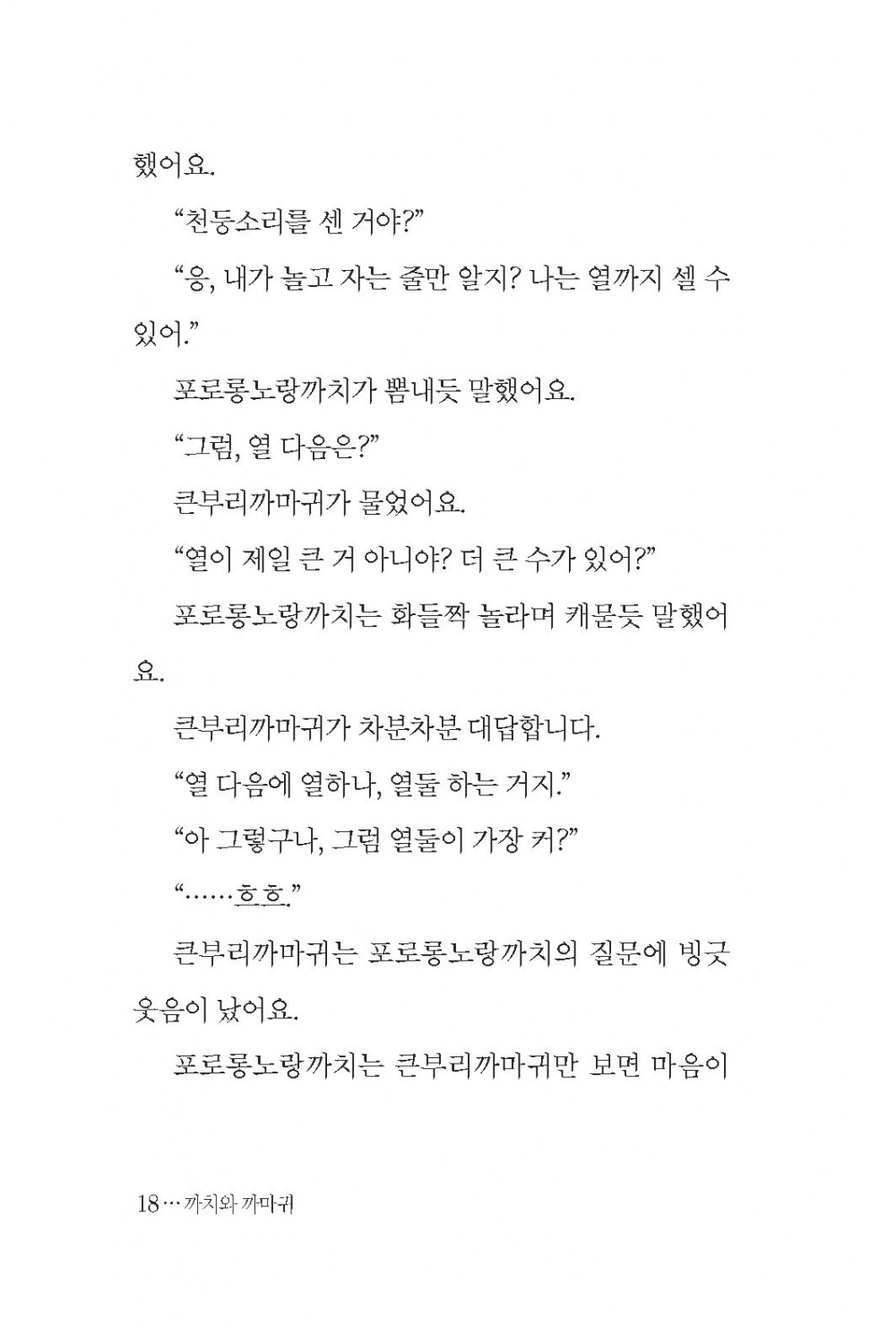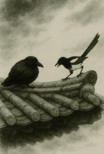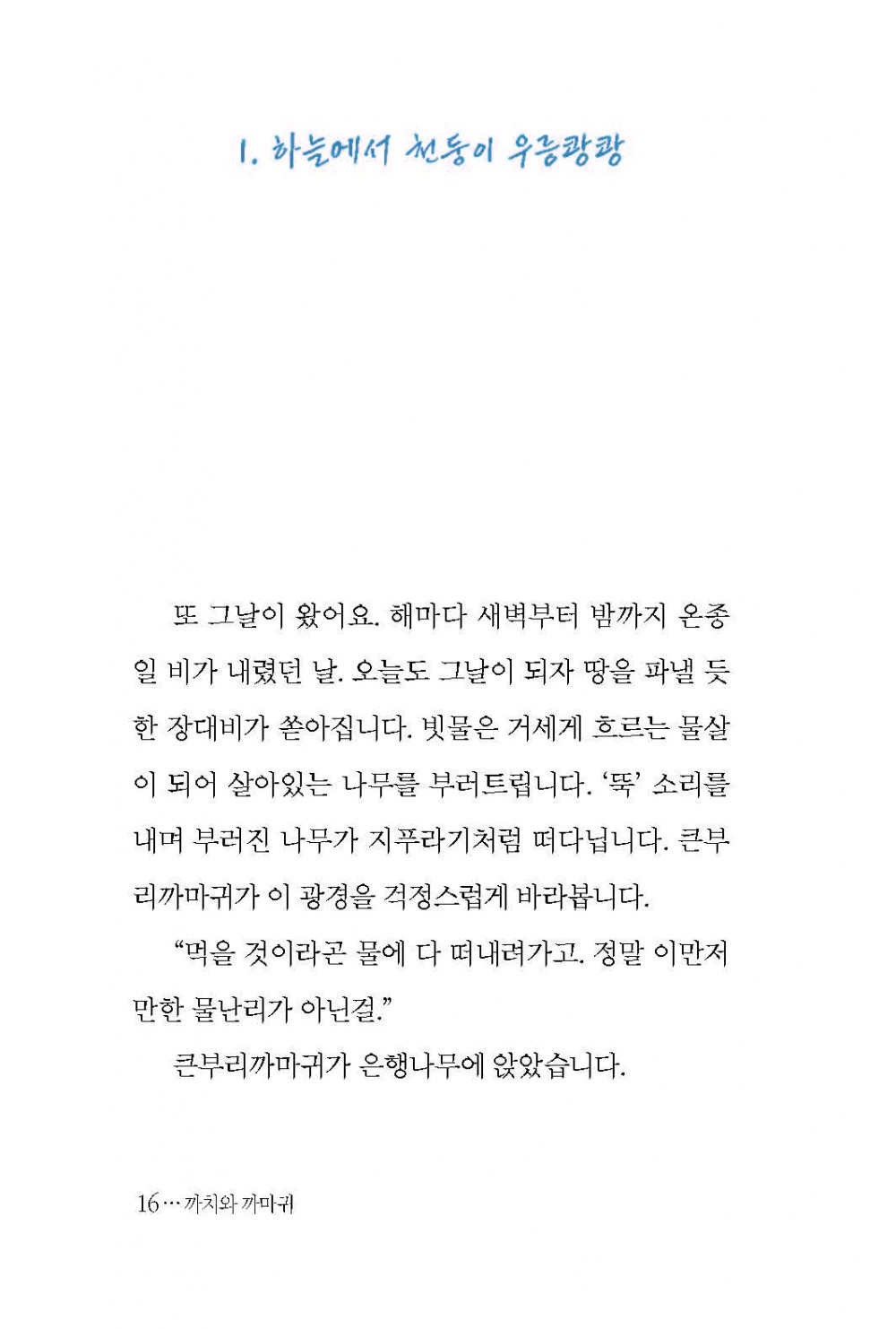 『까치와 까마귀』는 어린이를 위한 이야기이지만, 그 안에는 어른들이 잃어버린 용기, 겸손, 희망이 깃들어 있다. 이 작품은 설화와 평화를 잇는 하나의 은유적 기도이기도 하다. 세상을 살아가는 모든 생명체가 하나하나는 토막 나는 시간 속에 놓인 듯이 보여도, 사실은 모두 ‘영원’의 일부를 이룬다는 중대한 문제에 눈뜨게 한다.