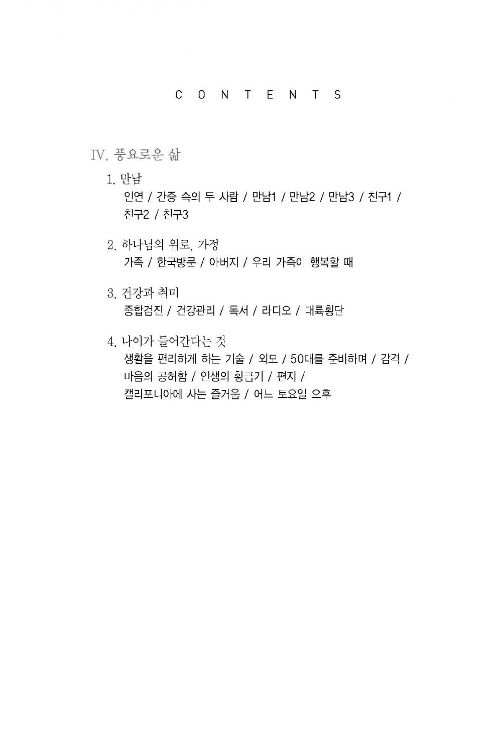 미국에 살면서 어떤 한 주에서 다른 주로 이사를 할 때마다 다른 나라로 이주하는 느낌을 받곤 했다. 그만큼 물리적인 거리도 멀었지만, 많은 새로운 환경과 제약들이 존재했다. 그동안 우리 가족은 중부의 두 개 주에서 살았고 동부인 뉴욕을 거쳐 서부인 캘리포니아에 정착했다. 그동안 잊지 못할 경치도 많이 즐겼고, 간직하고 싶은 추억과 마음을 따뜻하게 하는 인연들도 많이 가졌다. 그런 것들이 활자로 살아나기를 기대해 본다.