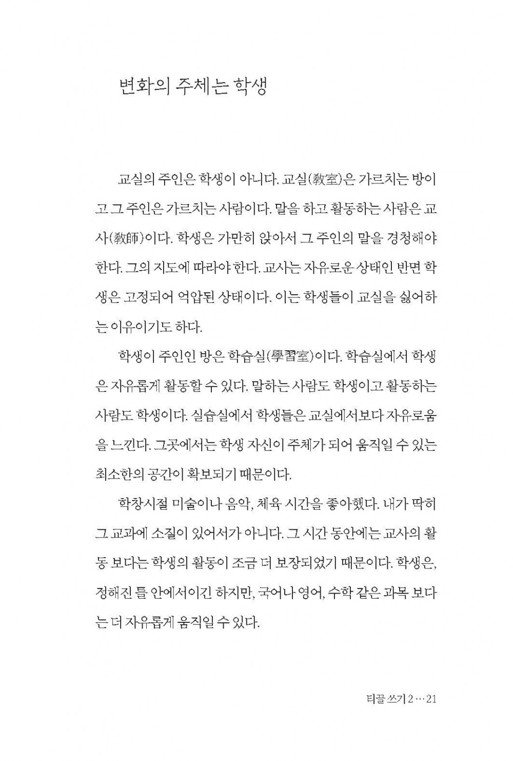 “일만하면 소 공부만 하면 도깨비. 홍성 풀무학교의 가르침이다. 일 속에서 공부를 찾으려고 부단히 노력하고 있다. 무엇을 배울 것인가? 지구가 어디를 향해 나아가지 않듯이 우리는 무엇을 위해 살고 있지 않다. 같은 자리를 반복해서 돌고 있는 것 같지만 하루도 같은 날이 없다. 일은 놀이이고 삶은 여행이다. 삶을 가장 잘 사는 방법은 그것을 자기 맘대로(to have) 휘두르려 하지 않고, 어디로 보내려고도 하지 않으며, 있는 그대로(to be)를 인정하는 것이다. 다른 누가 아닌 나 스스로로부터 배우기 위해 삶을 관조하는 훈련을 하고 있다. 그것이 사람에 대한 관심, 인문학(humanities)의 첫 걸음이다.”