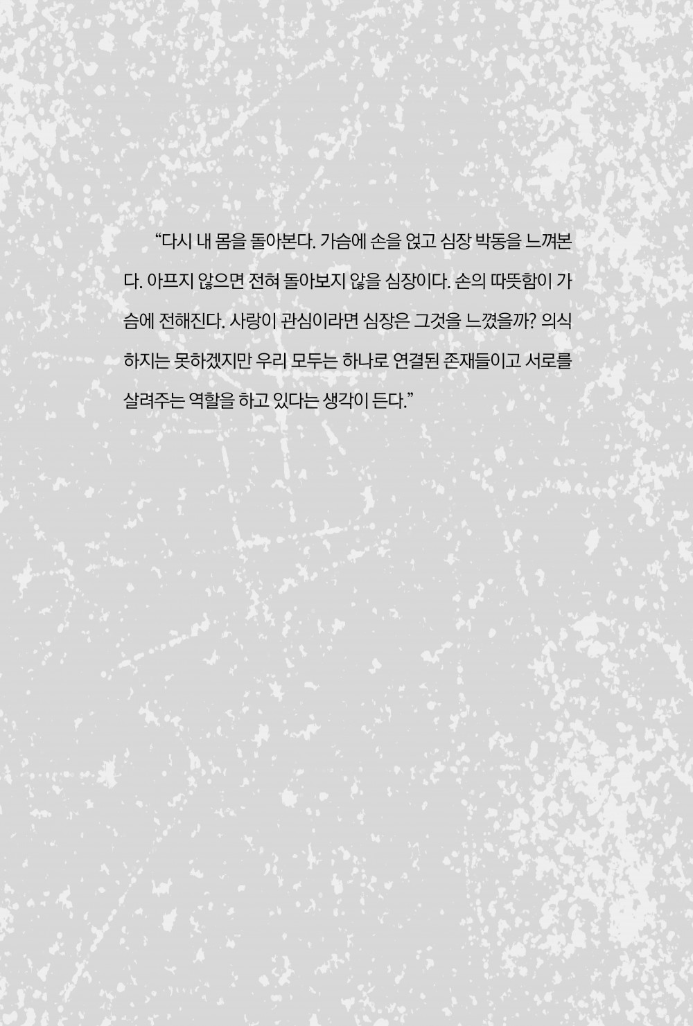 “일만하면 소 공부만 하면 도깨비. 홍성 풀무학교의 가르침이다. 일 속에서 공부를 찾으려고 부단히 노력하고 있다. 무엇을 배울 것인가? 지구가 어디를 향해 나아가지 않듯이 우리는 무엇을 위해 살고 있지 않다. 같은 자리를 반복해서 돌고 있는 것 같지만 하루도 같은 날이 없다. 일은 놀이이고 삶은 여행이다. 삶을 가장 잘 사는 방법은 그것을 자기 맘대로(to have) 휘두르려 하지 않고, 어디로 보내려고도 하지 않으며, 있는 그대로(to be)를 인정하는 것이다. 다른 누가 아닌 나 스스로로부터 배우기 위해 삶을 관조하는 훈련을 하고 있다. 그것이 사람에 대한 관심, 인문학(humanities)의 첫 걸음이다.”