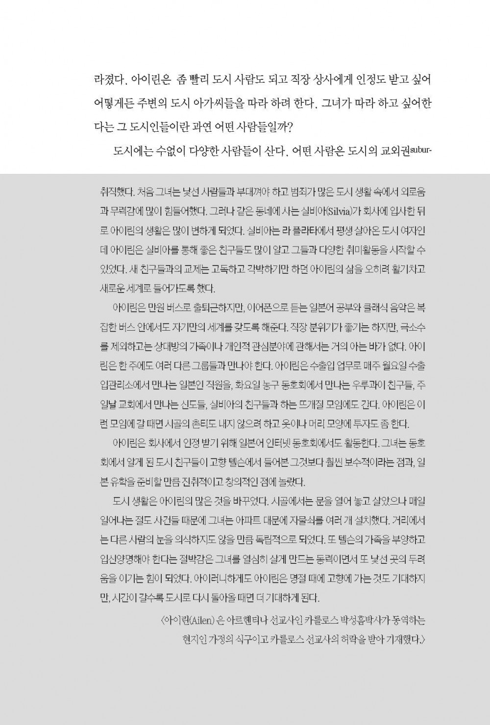 이 책은 기존 교회에 대한 평가도, 도시의 위압적인 힘에 관한 것도 아니다. 그보다 하나님께서 우리에게 주신 새로운 가능성과 징검다리들에 주목한다. 도시인들이 얼마나 희망적이고 인간미를 가진 사람들인지, 이 시대의 도시 사역을 위해 많은 다중 정체성을 가진 이들이 어떻게 활동하고 있는지를 들여다본다. 또한, 불신과 경쟁이 만들어낸 새로운 계층사회와 고도의 전문화가 탄생시킨 도시형 미전도 그룹들에 주목한다. 성공만을 향해 질주하던 중 강도를 만나 고통스러워 하는 이웃에 눈을 뜨면서, 교회는 과거와 비교할 수 없을 정도로 다양해진 기회와 필요 앞에 감격과 새로운 열정을 품게 될 것이다.