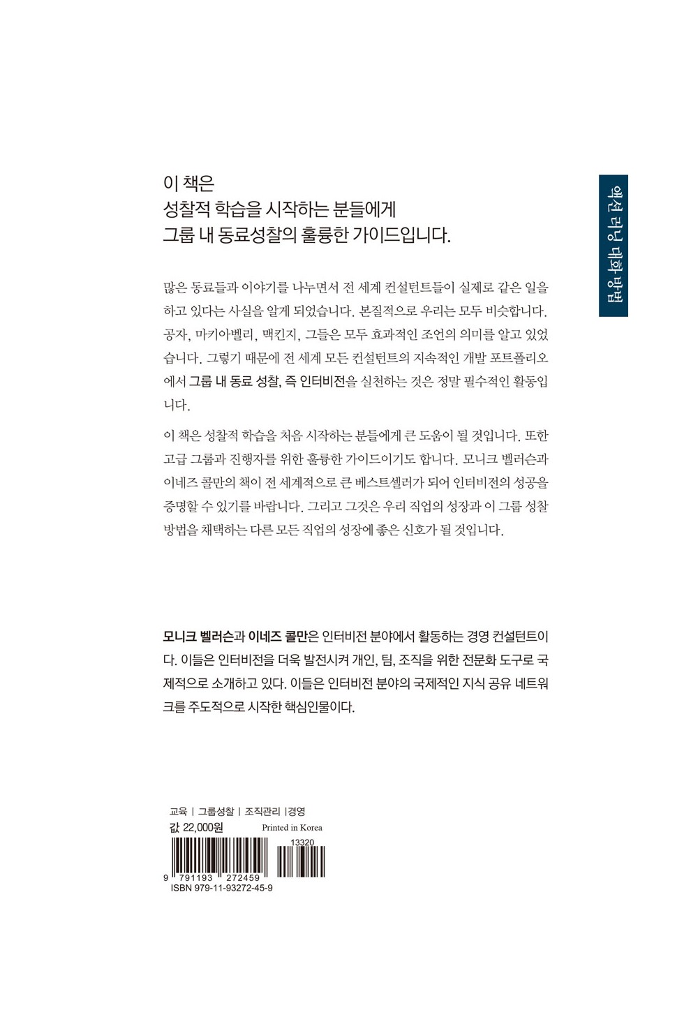 앞서 출간한 『통찰과 행동』은 자기 성찰과 실천을 잇는 지혜의 지도이며, 본서 『인터비전』은 동료 간 상호돌봄과 성장의 시스템을 제시한다. 두 책은 퀘이커의 평화 전통에 뿌리를 두고 ‘지배 없는 협력’, ‘동료 간 성장’, ‘상호 돌봄’을 탐구한 실천서로서, 서로를 거울처럼 비추며, 비폭력적 리더십과 자율적 거버넌스의 기초를 다지는 쌍둥이 시리즈다.